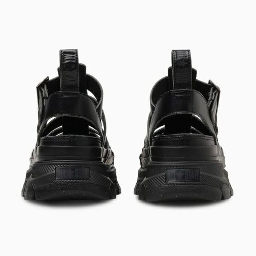 ボリューム感のあるソールとグラディエーターパターンが足元に存在感を与え、コーディネートの主役に最適な一足。