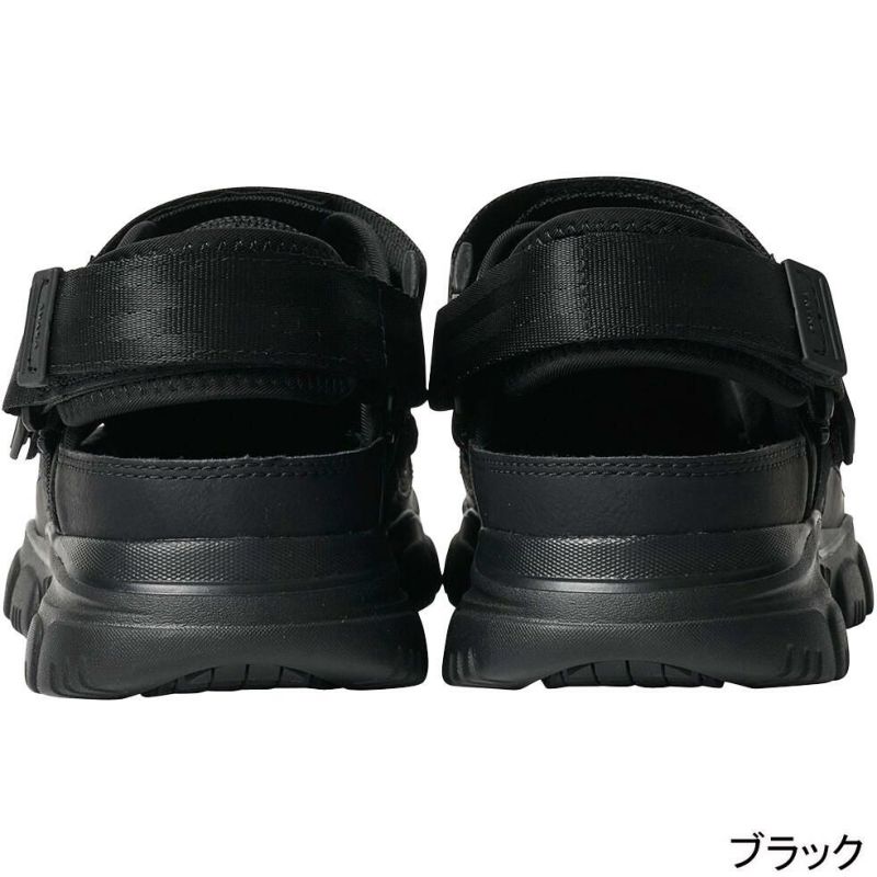 本革のような風合いで耐久性のあるPUレザー&ちらりと肌見えもする通気性の良いメッシュ素材に、太めのコードを組み合わせたアウトドアスタイルのアッパーデザインが印象的なスニーカーサンダル。