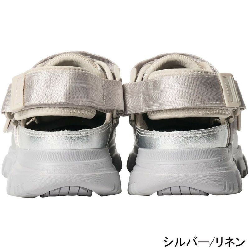 サンダルとスニーカーを掛け合わせたシューズライクなスポサンデザインながら、ヒールストラップは着脱可能になっているので、外してスライドサンダルとしてもお楽しみいただける2way仕様になっています。