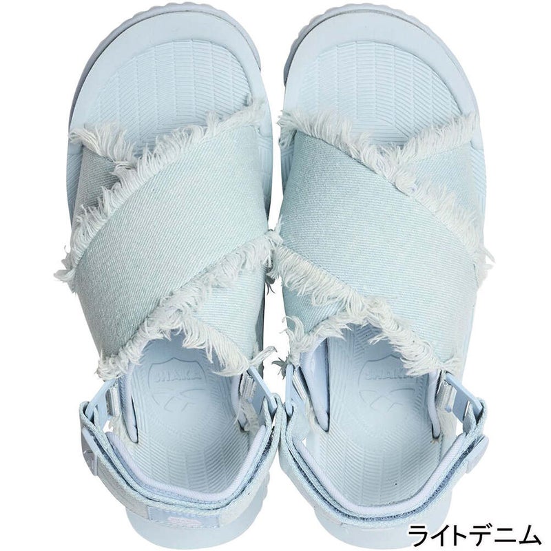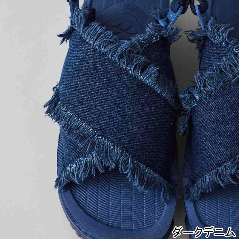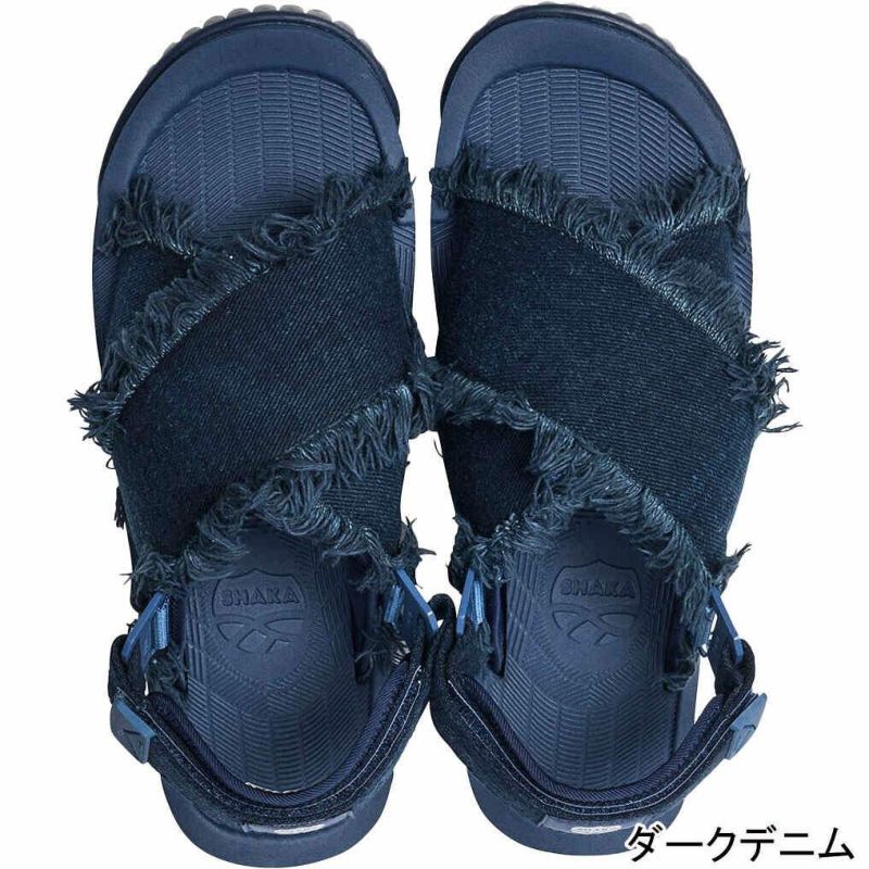SHAKA(シャカ)サンダルの快適さはそのままに、クラッシュデニム素材を採用することで、モード感とボヘミアンテイストを融合したデザインが魅力的なサンダルにアップデート。