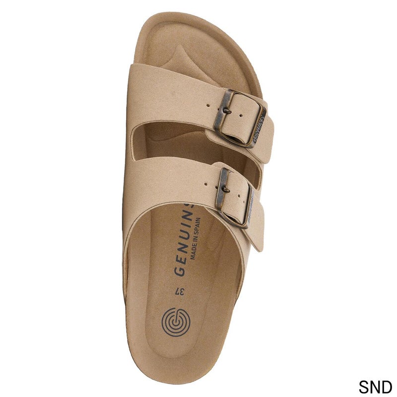 人体構造に基づいて設計されたフットベッドと調節可能なバックルストラップを備えたサンダル。