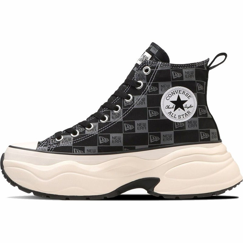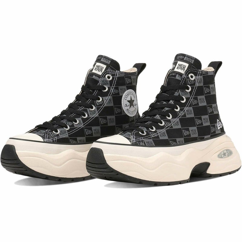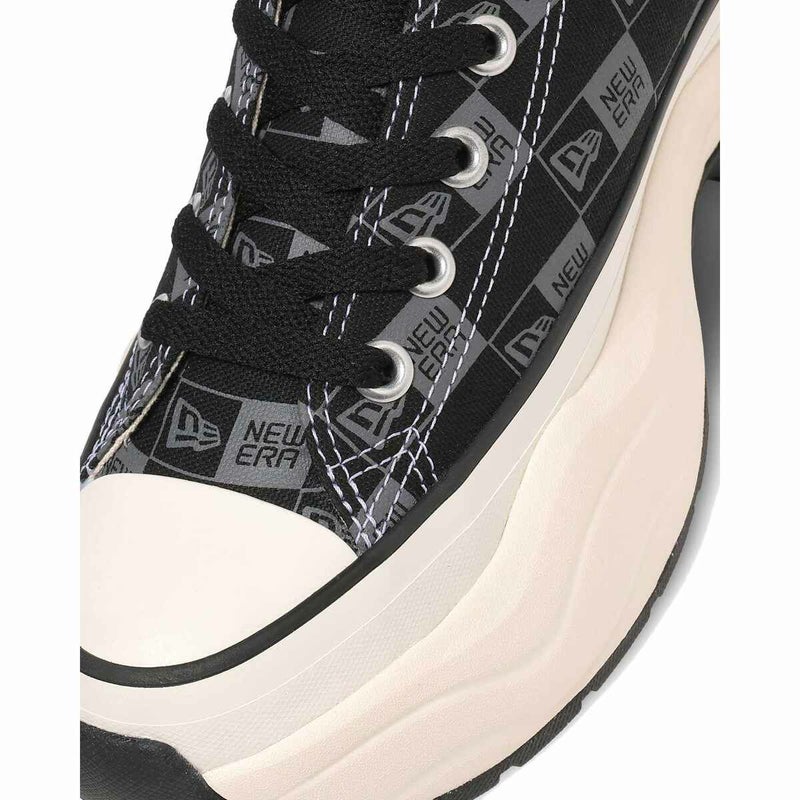 ブラックのアッパー全面にNEW ERA(R)のボックスロゴをダークグレイでプリントし、インソールやアウトソールまでブラックで統一したストリートテイストなデザイン。