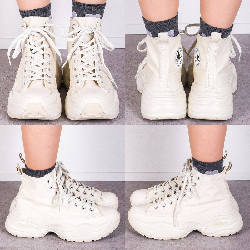 リサイクルマテリアルを随所に使用しつつ、履き心地とクラシックな外観を洗練させたオールスターの次世代モデル、ALL STAR (R)の厚底ソールアレンジモデル。