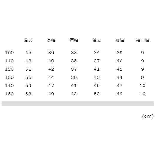 実寸サイズ(cm)100:着丈45、身幅39、肩幅33、袖丈34、裾幅39、袖口幅9