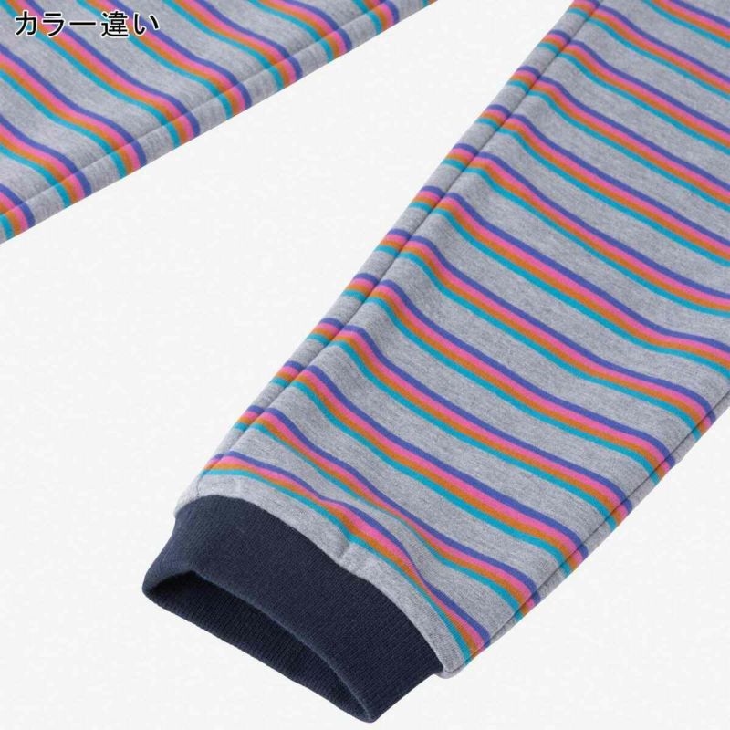 キャンプのワクワク感を表わす先染めのボーダー柄で仕上げています。