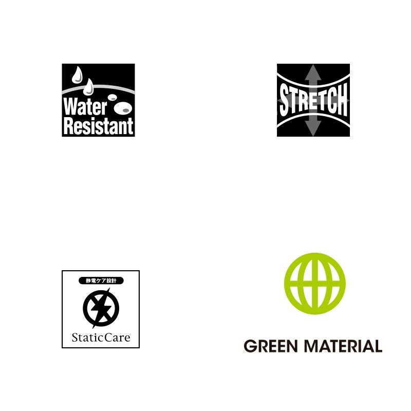 リサイクルナイロンとポリウレタンを使用したストレッチ性のある生地は、はっ水加工を施し、多少の雨にも対応。