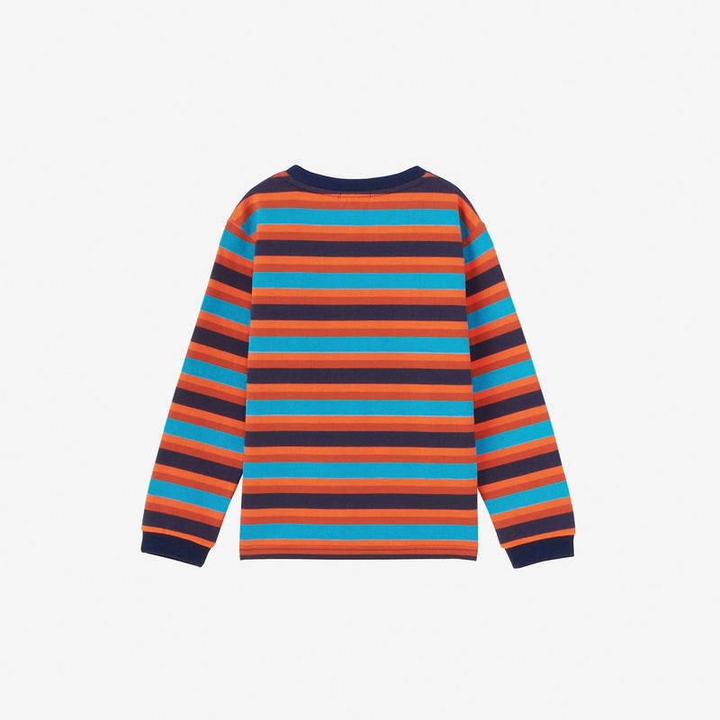 キャンプのワクワク感を表わす先染めのボーダー柄で仕上げています。