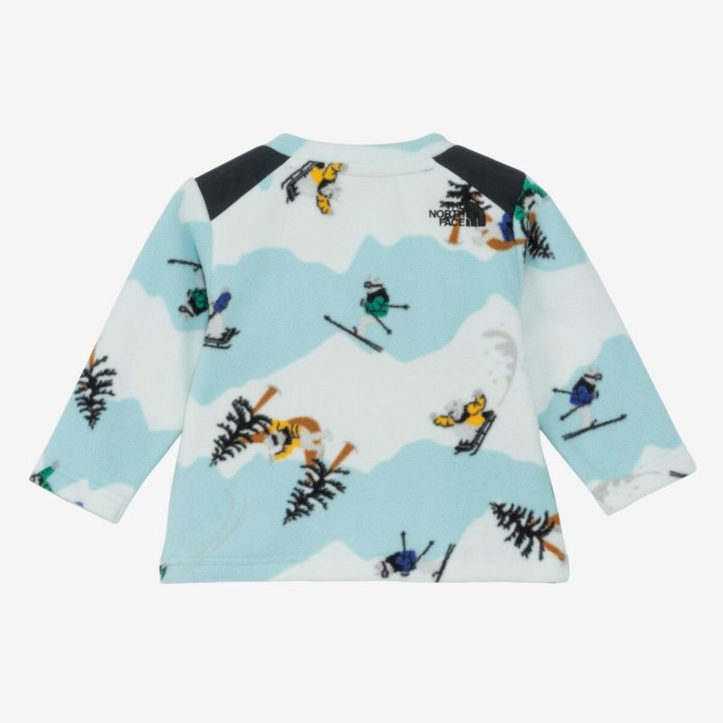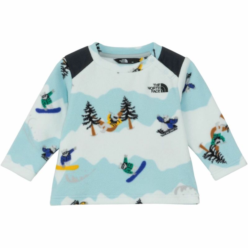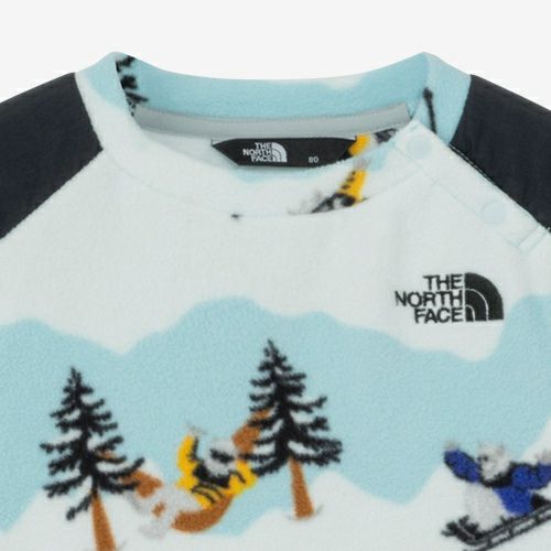 山をイメージした横縞に、スノーボードやスキー、ソリなどスノーアクティビティを楽しむイエティをあしらった、遊び心のある総柄。