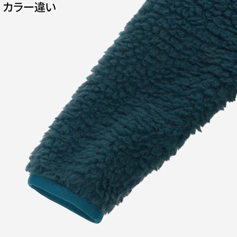 表面にはかさ高がある毛足の長いボアフリース、肌面には滑らかな肌触りのマイクロフリースをボンディングした生地を採用しています。