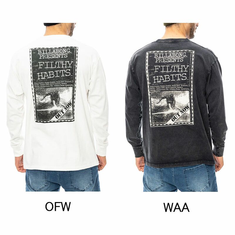 1988年に発表されたチームBILLABONGのサーフムービー「FILTHY HABITS」のカバーをバックプリントしたロンT。