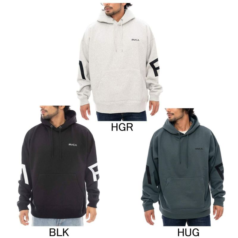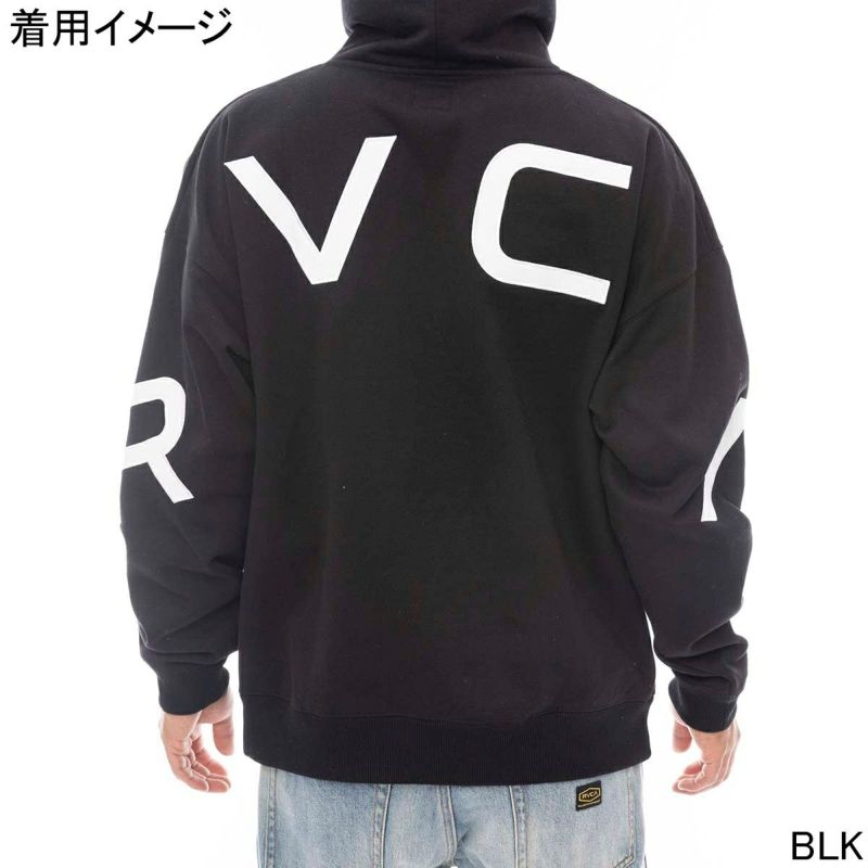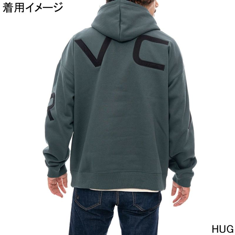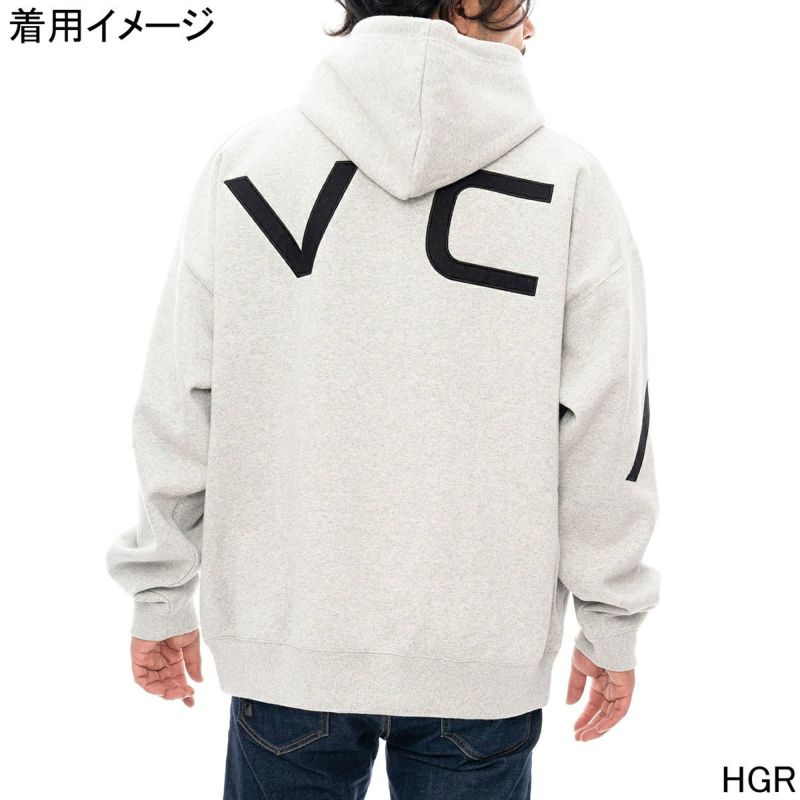 バックにRVCAロゴをビッグサイズで配置したプルオーバーパーカー。