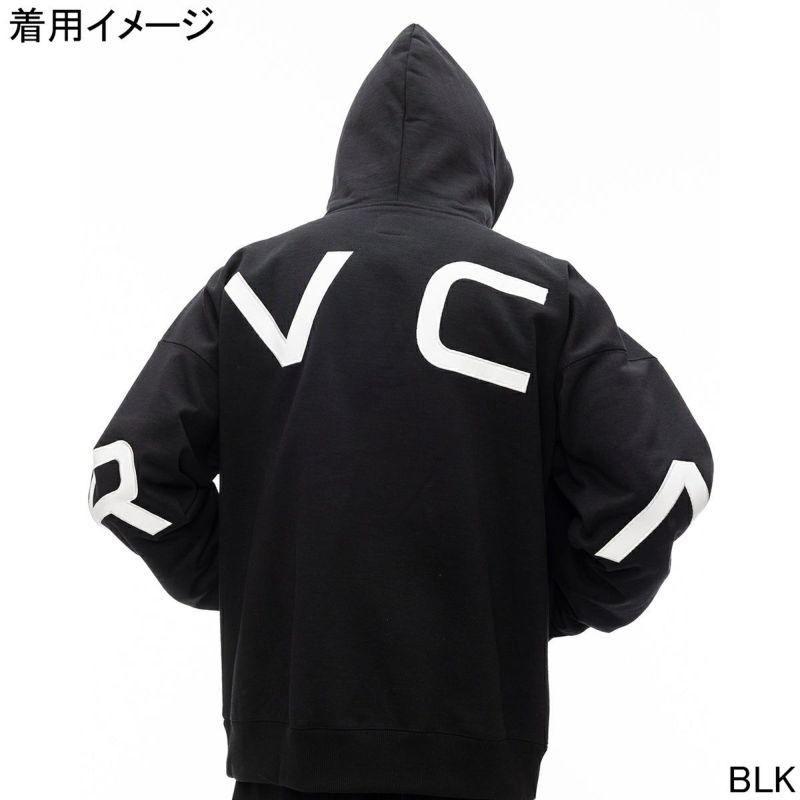 背面のショルダーからスリーブかけて、ビッグサイズで配置したRVCAロゴが印象的なジップアップパーカー。