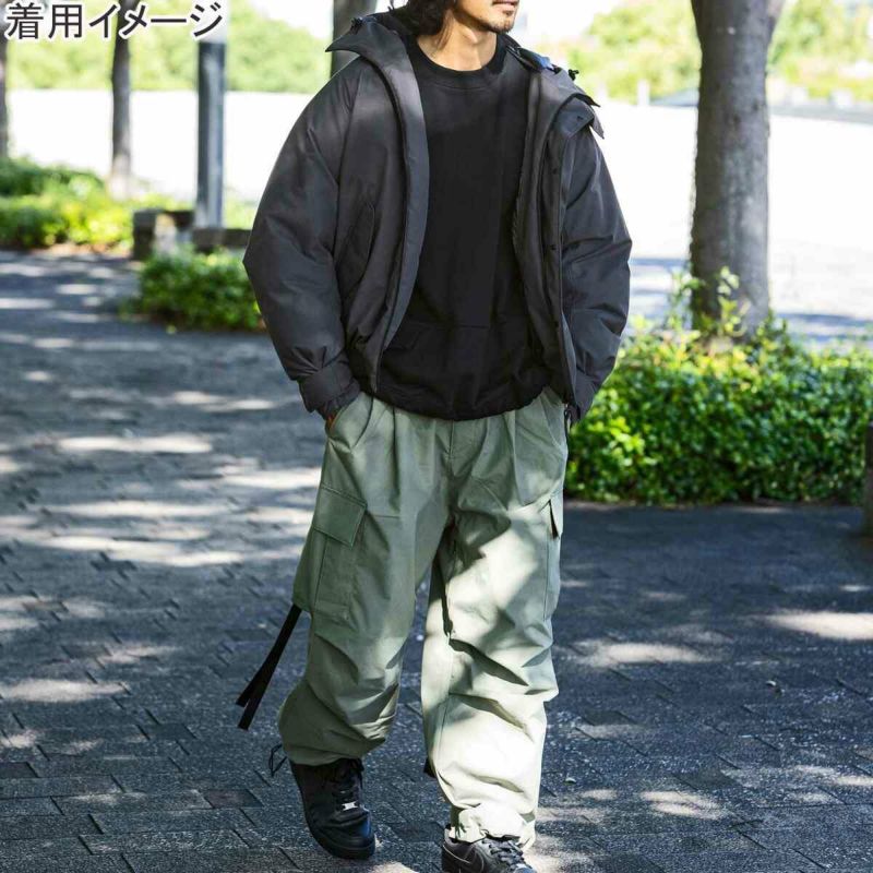 一般的なボマージャケットにはないフード、リストゲーターをプラスすることで、より機能的でシチュエーションを選ばないアイテムに仕上がっています。