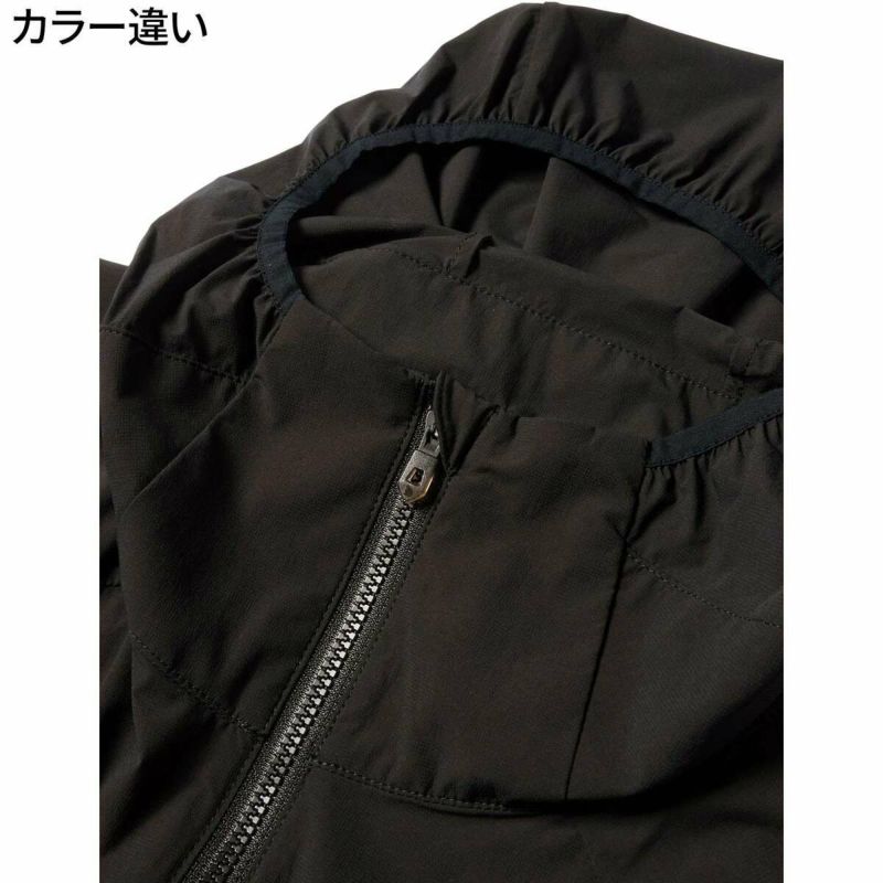 さらに、フードの首元に固定用のマグネットを装備し、ランニング時や強風時のバタつきを抑えます。