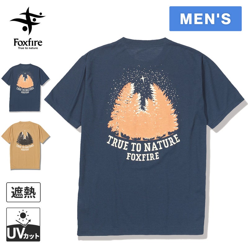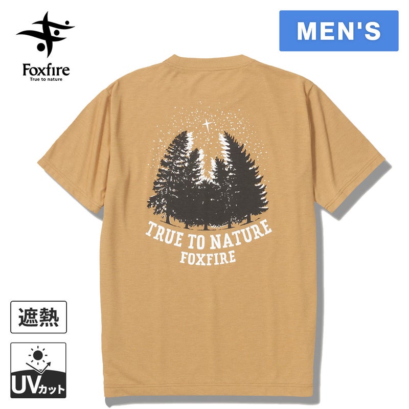 暗い森の上空を道しるべのように照らす星をモチーフにしたイラストをバックプリントしたTシャツ。
