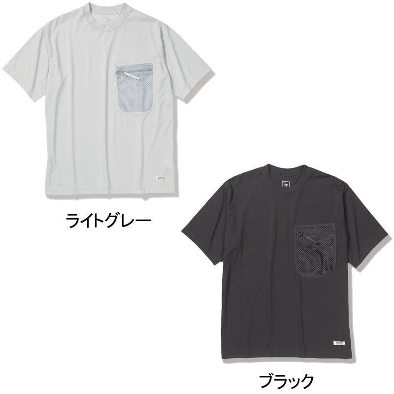 シンプルながら一着で着こなせるルーズシルエットと、左胸に配された大型のファスナー付きメッシュポケットがフィールド仕様をアピール。