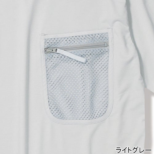 ・左胸に大型のファスナー付きメッシュポケット。