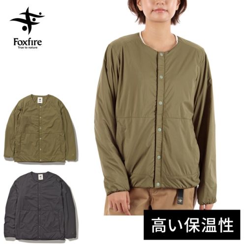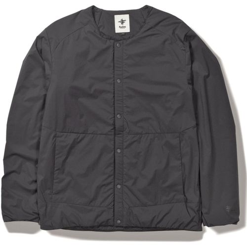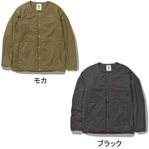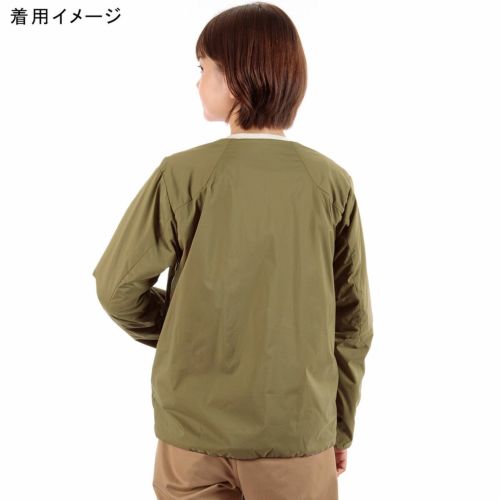通気性コーティングを施した薄手のストレッチタフタの表地に、中綿と裏地を一体化した高機能トリコット生地「Octa(R)cpcp(R)」をライニングした、ノーカラーデザインのウィンドシェルジャケット。