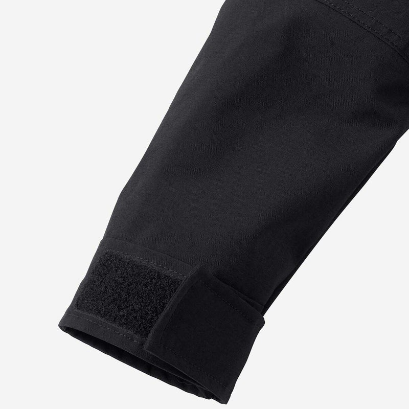 ダーツをつけてボリュームを持たせた肘や、太めの面ファスナーで調節できる袖口など、上半身の動きを妨げにくい仕様を採用。