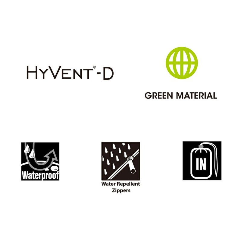 フロントは止水ファスナーを使用し、防水性に加え軽量性も重視。
