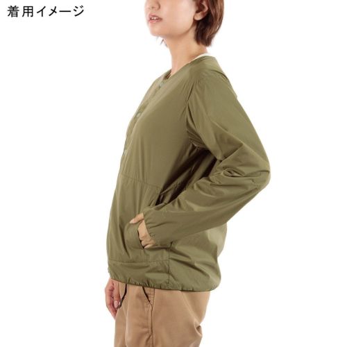 通気性コーティングを施した薄手のストレッチタフタの表地に、中綿と裏地を一体化した高機能トリコット生地「Octa(R)cpcp(R)」をライニングした、ノーカラーデザインのウィンドシェルジャケット。