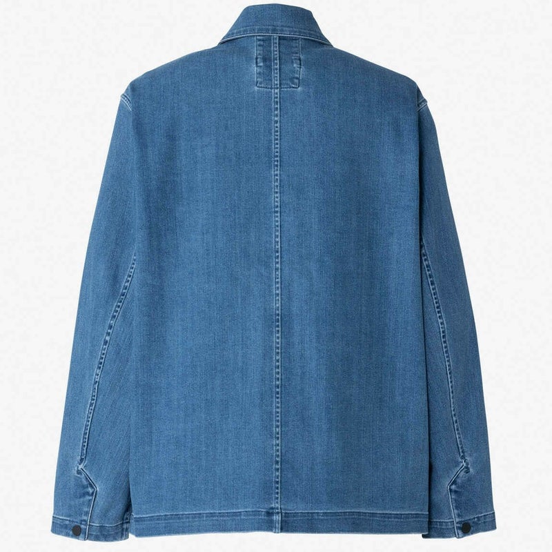 ビーチで回収したリサイクルポリエステルを素材の一部に使った、日本製のインディゴ染めデニム生地の風合いを楽しめる1着です。