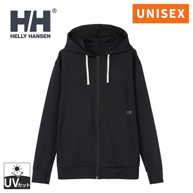 ヘリー・ハンセン(HELLY HANSEN) L/S ワンポイントロゴ フルジップ フーディー ラッシュガード L/S One Point Logo FZ Hoodie Rashguard メンズ レディース ブラック HE82630 K