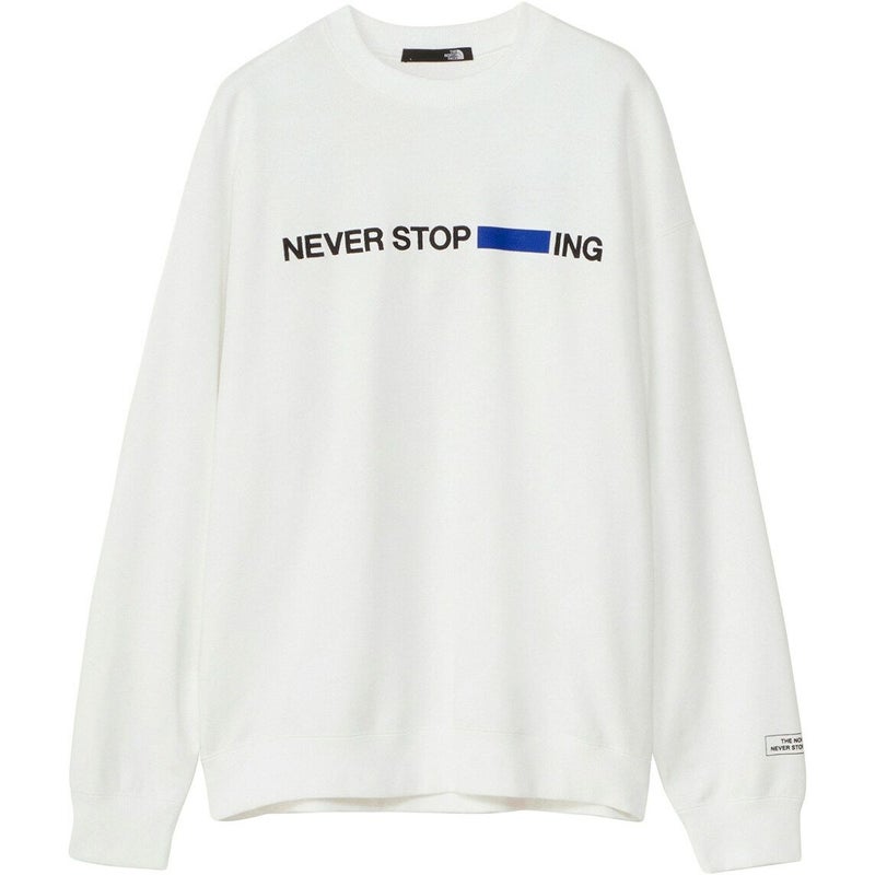 スウェットクルーの左胸に、メッセージ性の高いグラフィックを刺繍で配置しました。