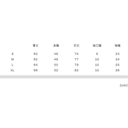 実寸サイズ(cm)S:着丈60、身幅46、裄丈74、袖口幅9、袖幅23