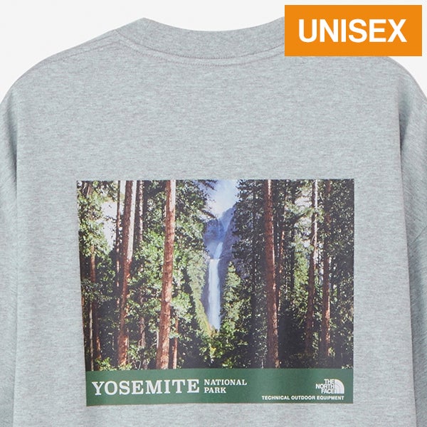 ハーフドームやトンネルビューなど、ヨセミテ国立公園の特徴的な風景のグラフィックを背面に配置。