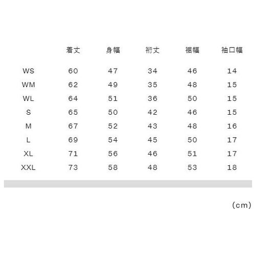実寸サイズ(cm)WS:着丈60、身幅47、裄丈34、裾幅46、袖口幅14