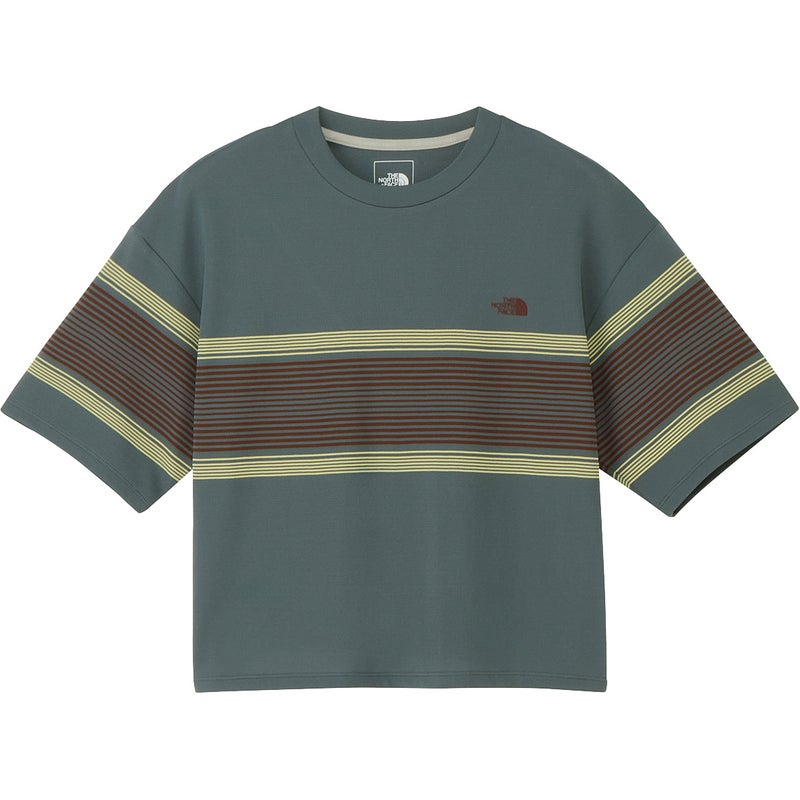夏の強い日差しに対応する、パネルボーダーの女性用ランニングカットソー。