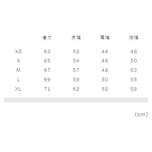 実寸サイズ(cm)XS:着丈63、身幅52、肩幅44、裾幅48