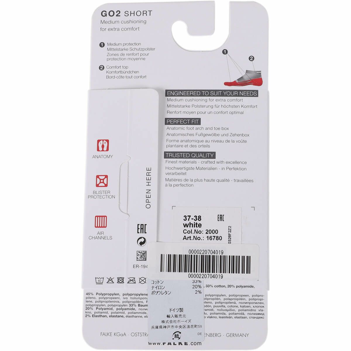 他の画像を見る 即納 ファルケ(FALKE) GO2 ショートソックス GO2 Short Socks Women レディース ホワイト #16780 2000 販売価格 ¥ 1,309 税込 60%OFF 詳細を見る お気に入り登録