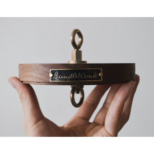 側面にはブランドの【真鍮プレート】がついており、ウォルナット材との相性も◎