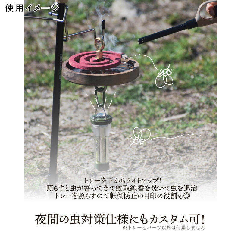 1/4インチ規格の穴が空いているため、手持ちもキャンプギアでカスタムしえ楽しむ事も出来ます。