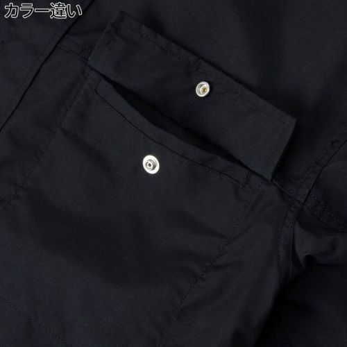 シルエットはボックスフィットで、フロントは着脱のしやすいドットボタン仕様。
