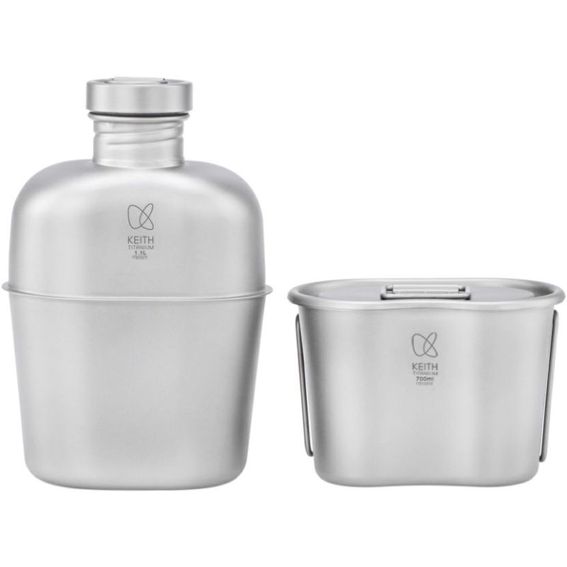 ・厚さ約0.4MMの1100mlチタンケトルと700mlクッキングカップで構成されるメスティン・ボトルセット。