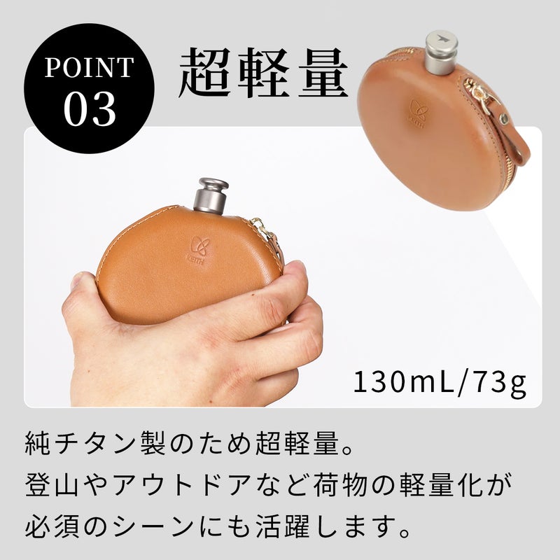 ・容量130MLの丸形スキットル。