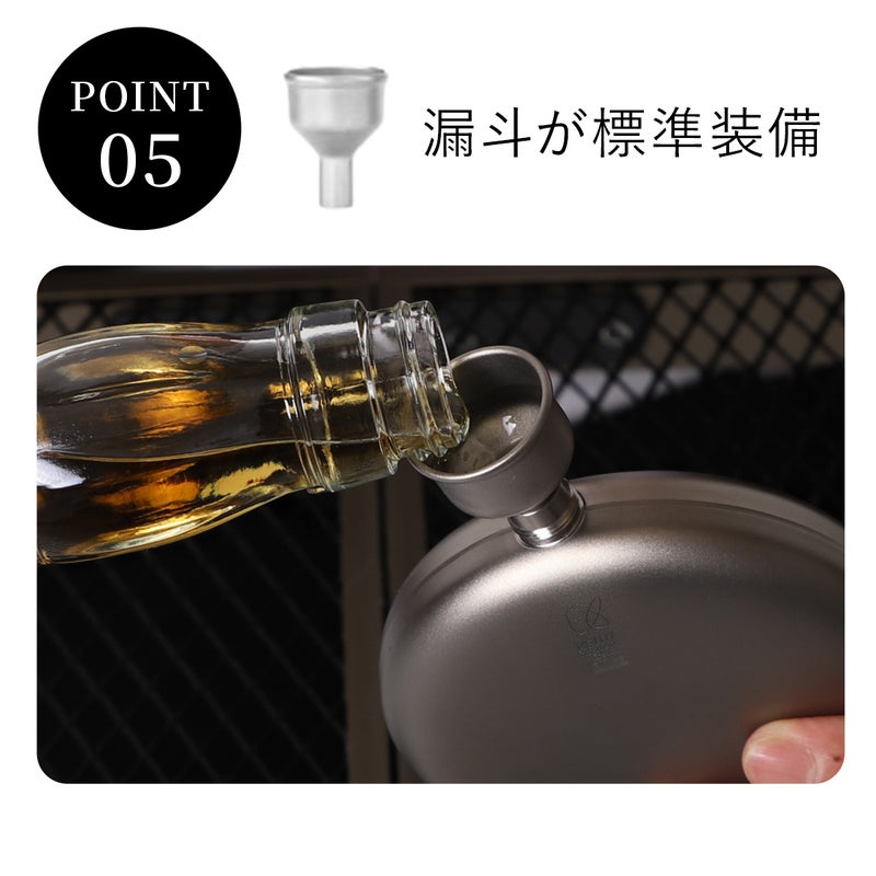 ・純チタン製の漏斗が標準装備されているので、小さい口にも漏れることなく注ぐことが可能。