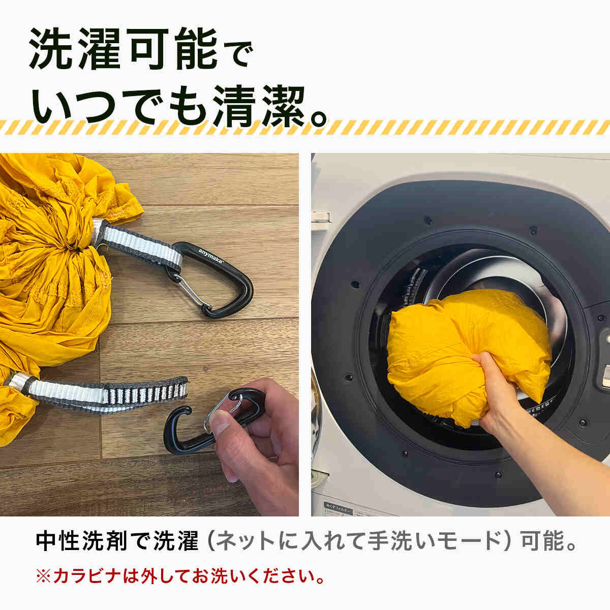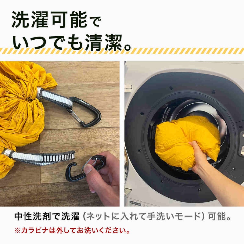・手持ちのハンモックでも300~360cm以内の標準的なハンモックであれば、仕様が合えば代用可能。