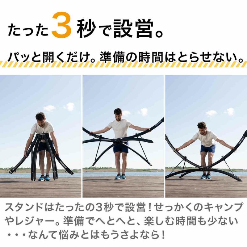スタンド部分は「3秒設営」が可能な設計となっており、驚くほど短時間で設置が完了します。
