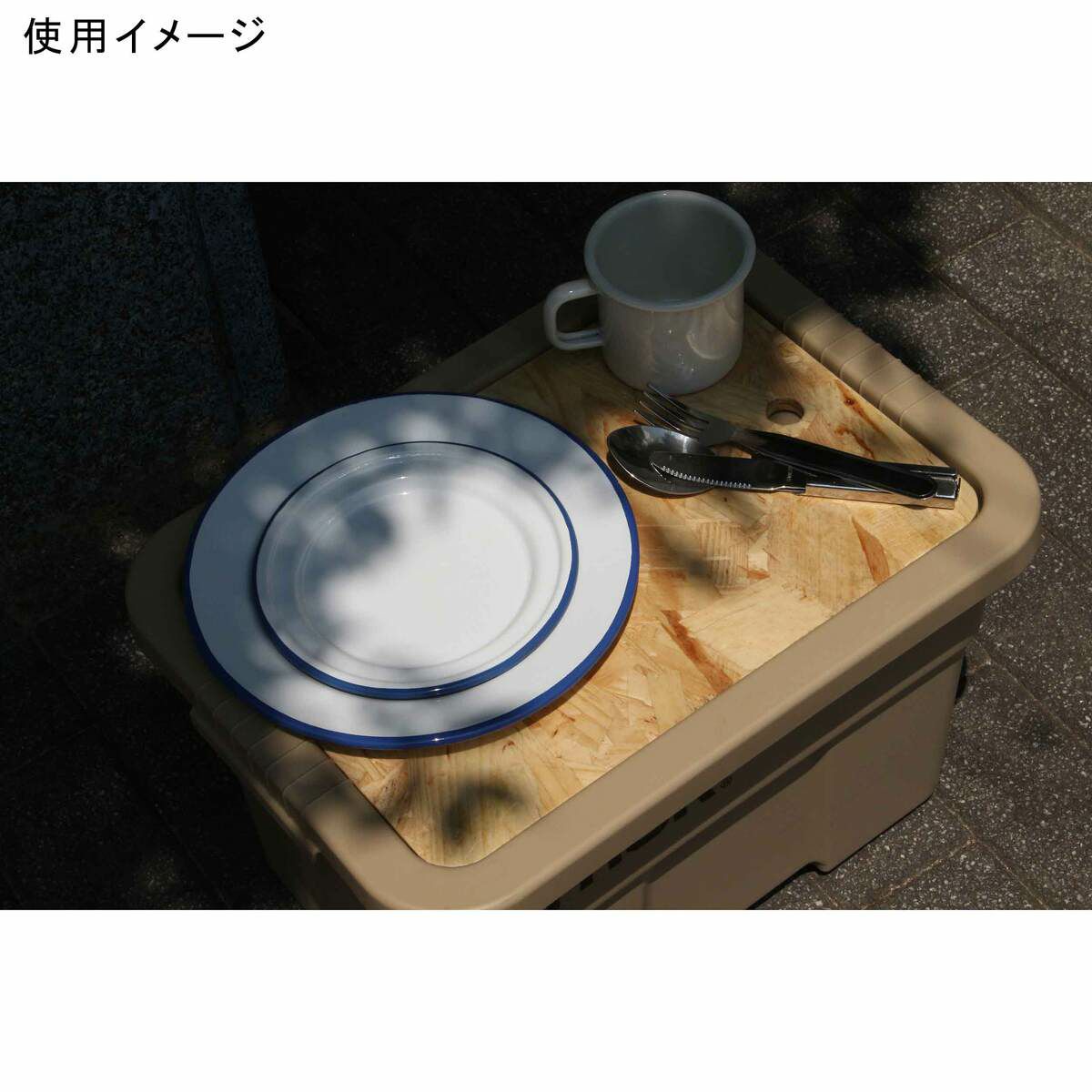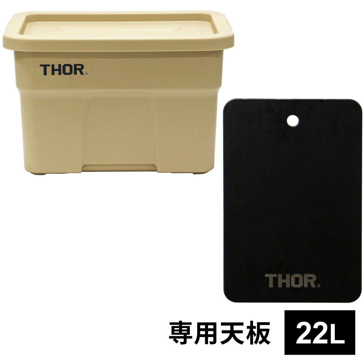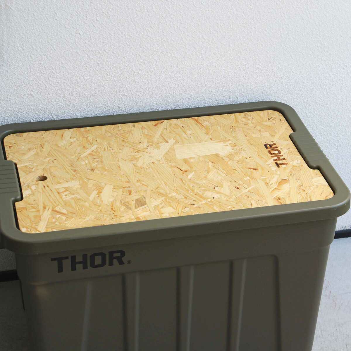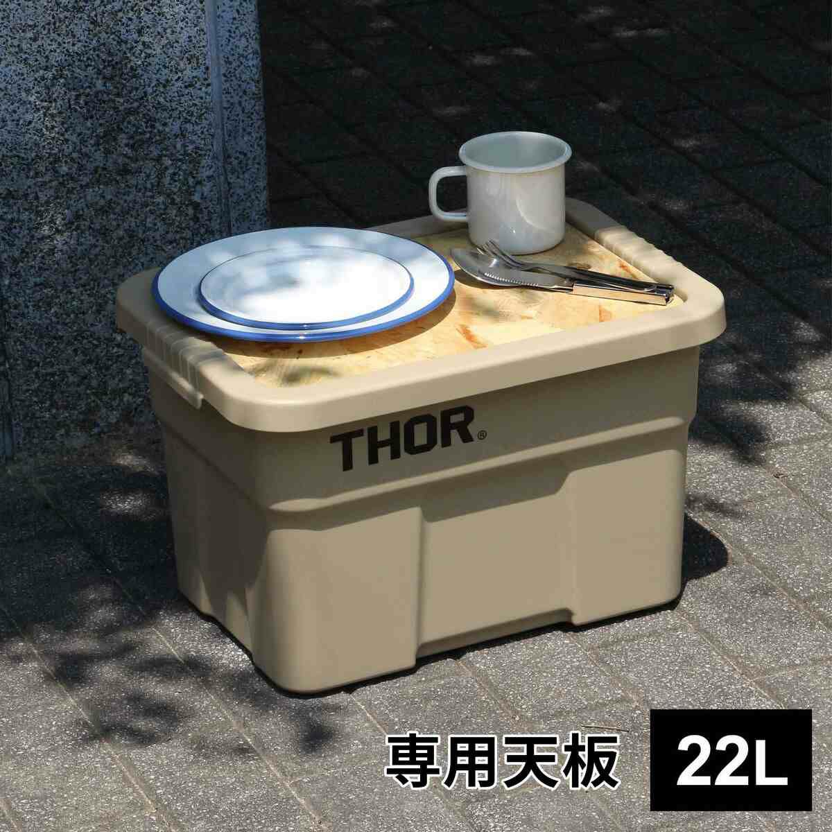 THORラージトート22Lのフタ部分に乗せることでテーブルとして使用できる専用天板。