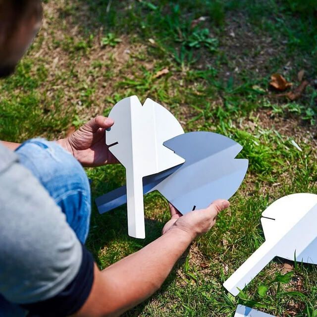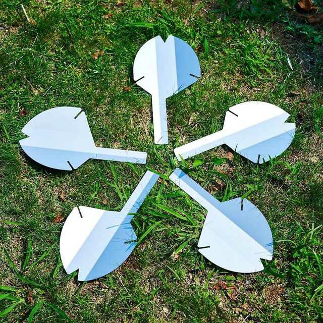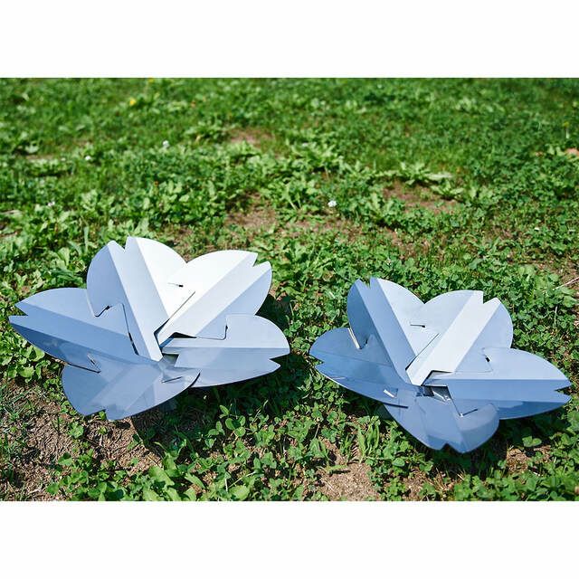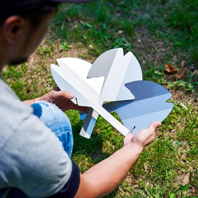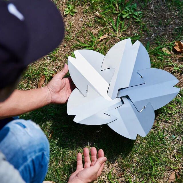 それぞれまったく同じ形状の花弁プレートを5枚組み合わせることで、桜型の焚き火台が完成します。