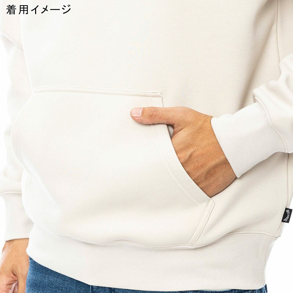膨らみとハリのあるボンディング素材を使用したプルオーバーパーカー。