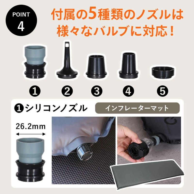 FLAIR エアポンプ 空気入れ 空気抜き LED ライト ランタン LEDライト 行楽 充電式 電動エアポンプ カラビナ付 三脚取り付け用穴 自立設計 5種類ポンプノズル スタイリッシュ アウトドア キャンプ 登山 BBQ 旅行 衣替え マット 真空パック 引っ越し 圧縮 収納袋 コンパクト 小型 軽量 浮き輪 プール エアマット 出張