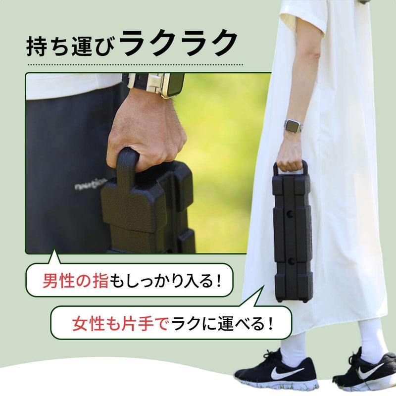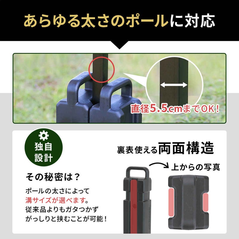 ハンドル付きで持ち運びやすく、様々な太さのポールに対応します。