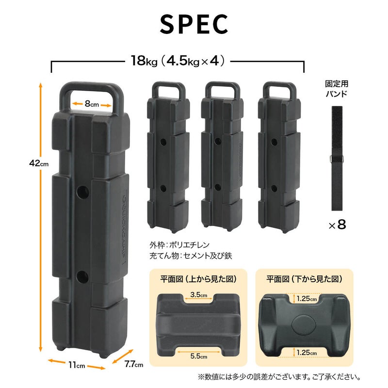 送料無料 QCWEIGHT タープテント用ウエイト マルチウエイト 行楽 スリム テント タープ 4.5kg 9kg 18kg 4個 ウェイト おもり 万能ウエイト テントウエイト 重り タンク スタック 重ね 風対策 看板 アウトドア イベント マルシェ 固定 錘 サッカーゴール フットサルゴール 運動会 セメント オーニング BBQ バーベキュー