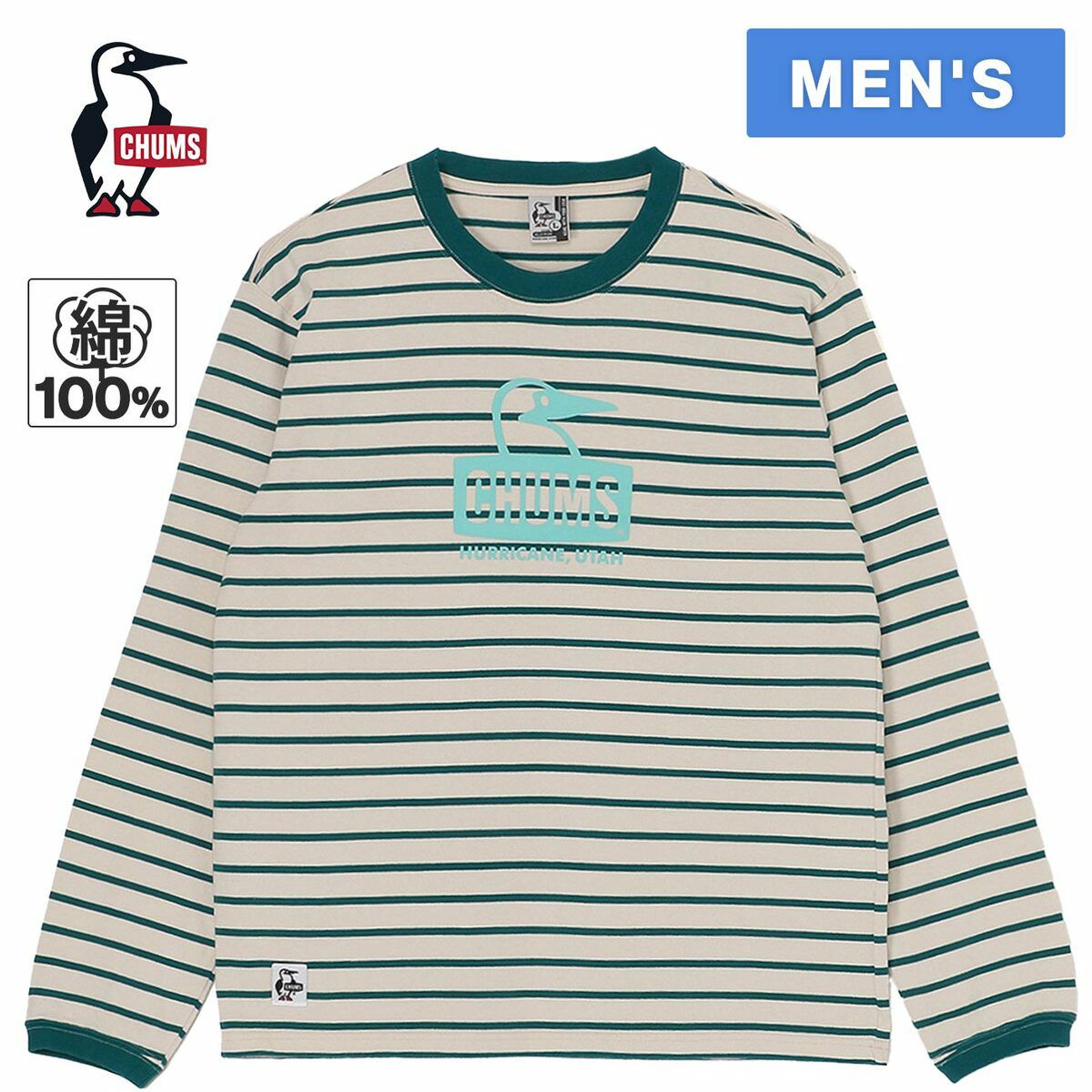 チャムス(CHUMS) ブービーフェイス ロングスリーブ Tシャツ Booby Face L/S T-Shirt メンズ 半袖Tシャツ クリーム/ティールグリーン CH01-2274 W106