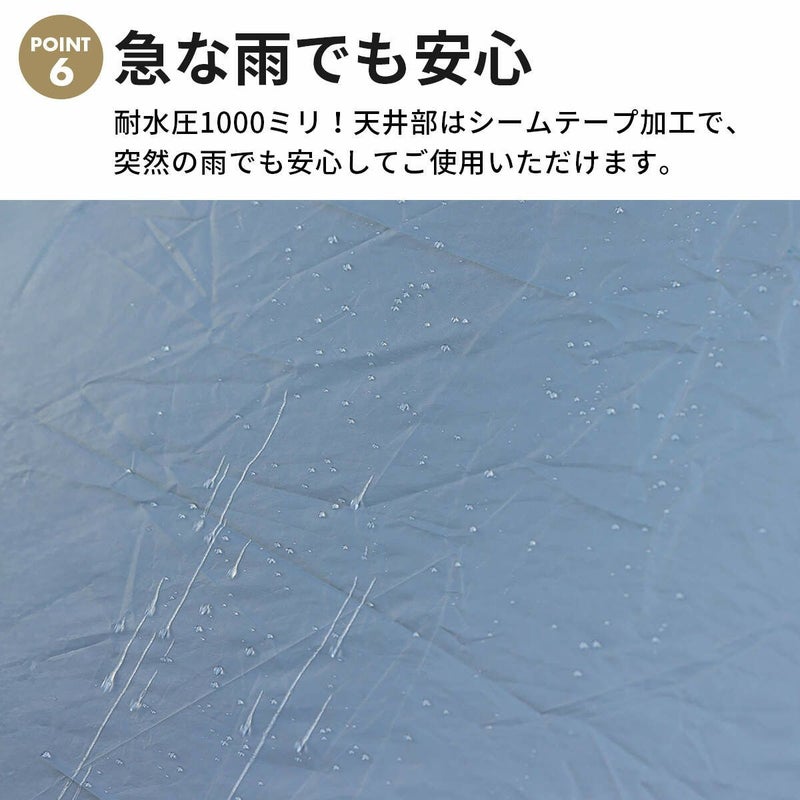 また天井部分の縫い目にはシームテープ加工がされており、小雨程度の雨であれば防ぐことができます。